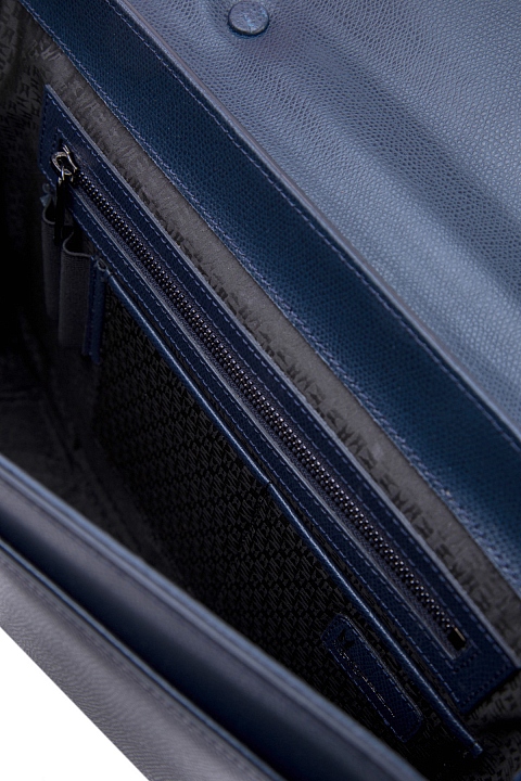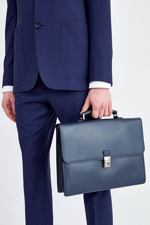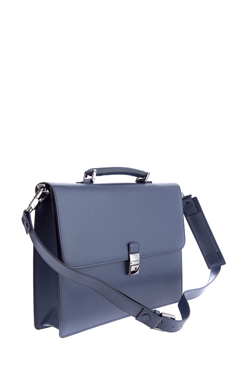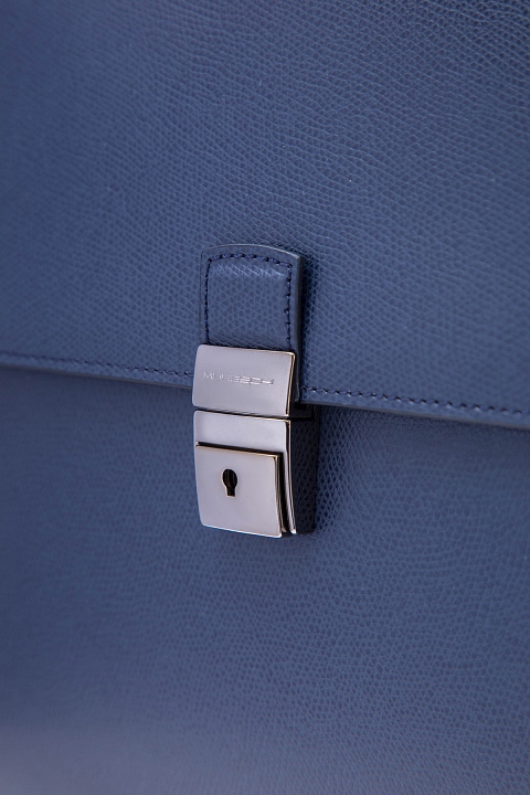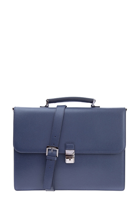 Лаконичный мужской портфель из коллекции осень-зима от Moreschi выполнен из фактурной телячьей кожи с зернистой поверхностью в серо-синем оттенке. Аксессуар с одним вместительным отделением оснащен внешним карманом открытого типа, расположенным под клапаном, внутренним карманом на молнии, держателями для канцелярских принадлежностей. Модель надежно защищена застежкой с уникальным замком, ключ от которого хранится у владельца. Съемный плечевой ремень делает модель еще более универсальной. Вся фурнитура выполнена в титановой гамме. Параметры: 37.5×28×8.5 см. Сделано в Италии.