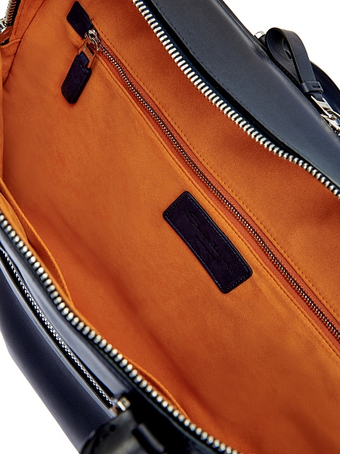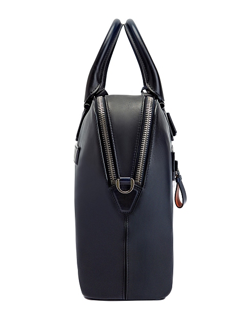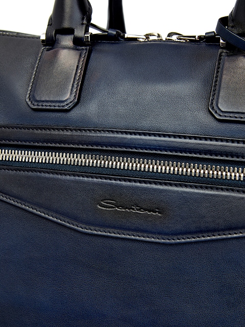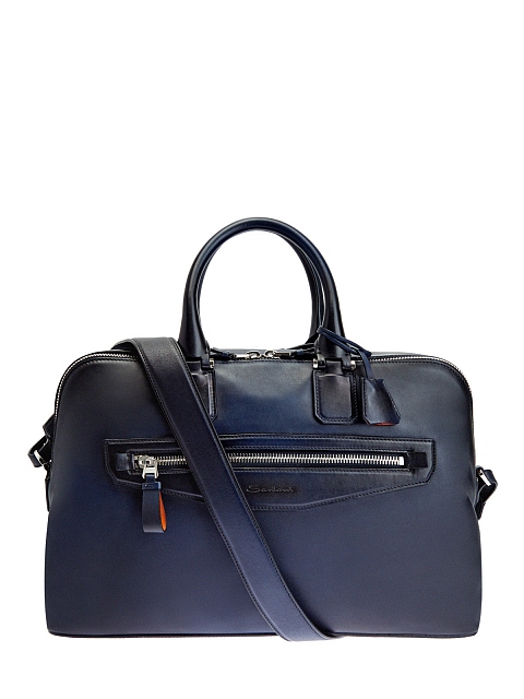 Мужская сумка в насыщенном синем оттенке от Santoni создана из окрашенной вручную кожи. Функциональный дизайн предусматривает съемный плечевой ремень и эргономичные ручки, а также дополнительный внешний карман на молнии. Изделие хорошо держит форму и идеально подходит для ноутбука и документов. Детали: подкладка в фирменном оранжевом цвете, два отделения, тисненый логотип бренда. Сделано в Италии.