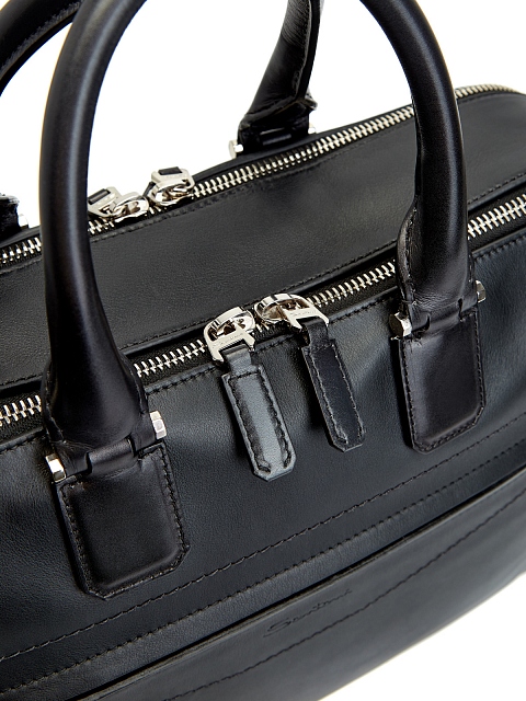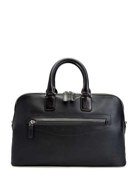 Мужская сумка в универсальном черном цвете от Santoni создана из окрашенной вручную кожи. Функциональный дизайн предусматривает съемный плечевой ремень и эргономичные ручки, а также дополнительный внешний карман на молнии. Изделие хорошо держит форму и идеально подходит для ноутбука и документов. Детали: два отделения, тисненый логотип бренда. Сделано в Италии.