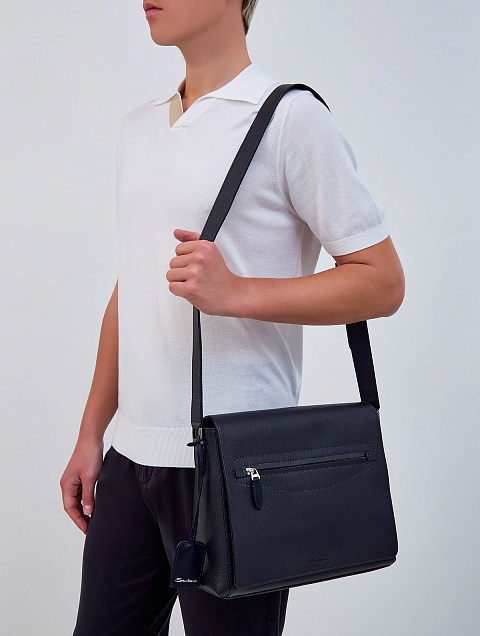 Сумка ручной работы из крупнозернистой кожи с плечевым ремнем