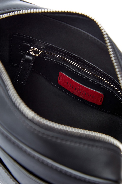 Сумка-мессенджер от Valentino Garavani выполнена из плотной телячьей кожи гладкой выделки в классическом черном цвете. Логотип VLTN создан в фирменном оттенке Rosso. Вместительный аксессуар прямоугольной формы дополнен внешними плоскими карманами и съемным плечевым ремнем с возможностью регулировки. Застежка-молния дополнена кожаной лентой на пуллере. Сделано в Италии.
