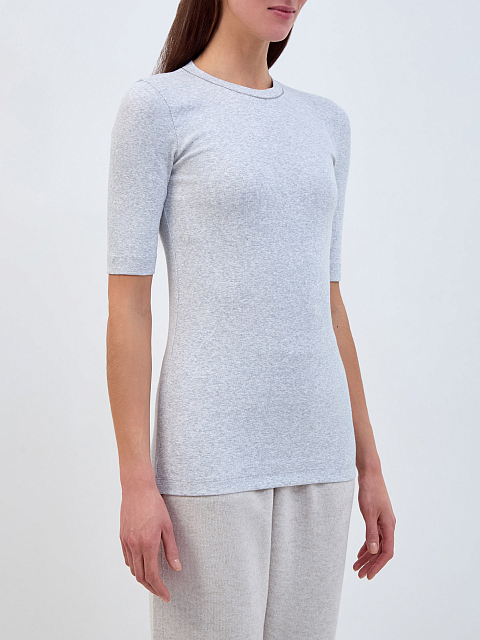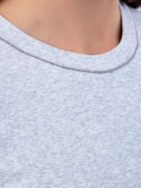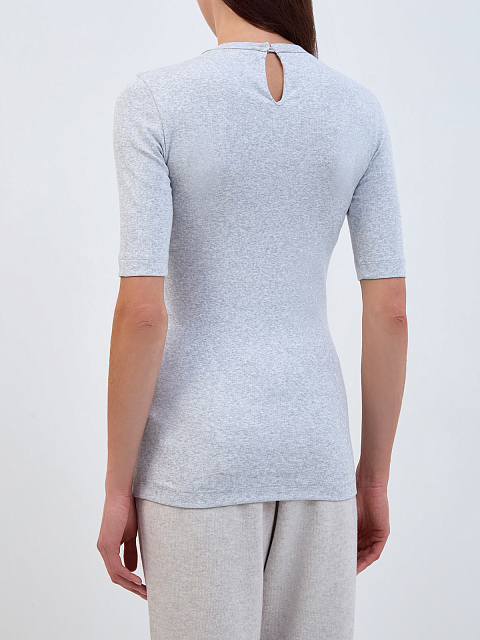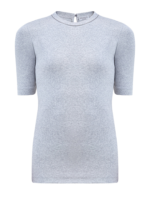 Серая женская футболка от Brunello Cucinelli выполнена из эластичного хлопка — мягкой и гигроскопичной ткани, которая идеально подходит для повседневных образов. Фирменный элегантный штрих — цепочка мерцающих бусин Мониль ручной огранки вдоль ворота. Детали: короткие рукава, удлиненный облегающий силуэт, застежка на пуговицу на спинке. Сделано в Италии.