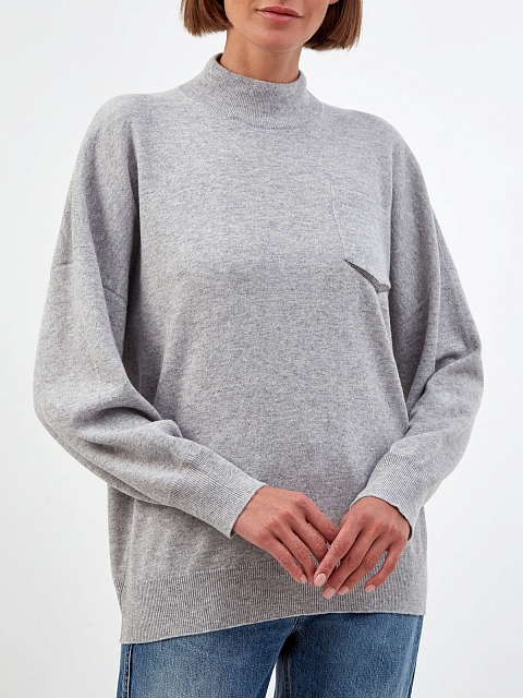 Джемпер из кашемира с накладным карманом и вышивкой Мониль