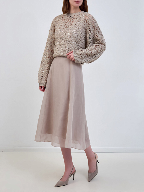 Женская объемная юбка-миди из шелкового крепа crispy BRUNELLO_CUCINELLI купить за 299 800 руб.