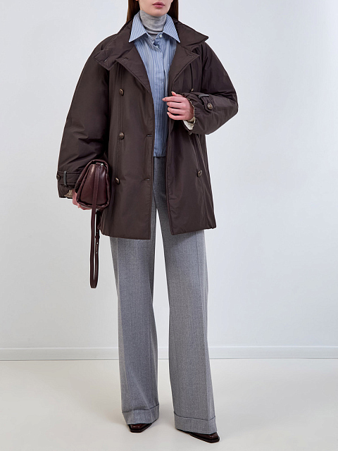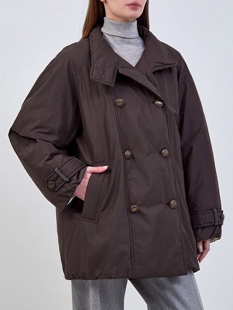 Двубортная куртка с пуховым утеплителем и деталями Мониль