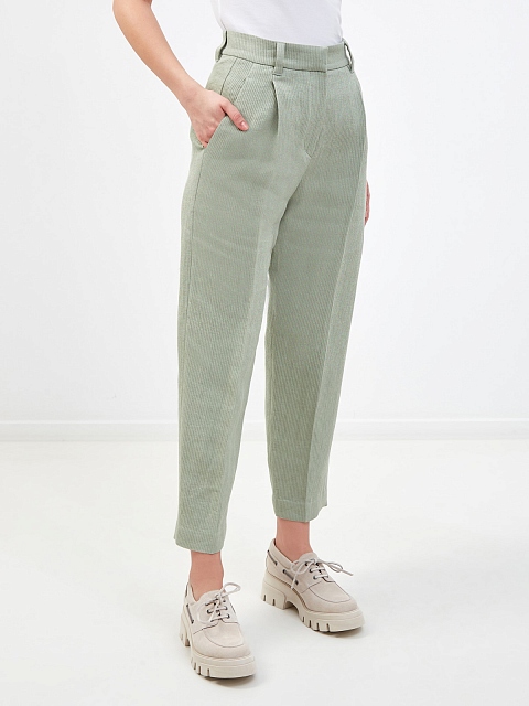 Брюки Volume из льняного и хлопкового репса в рубчик