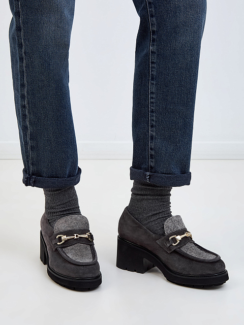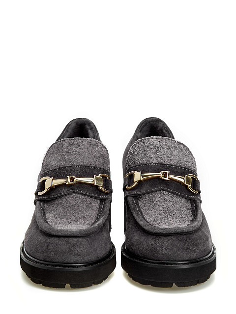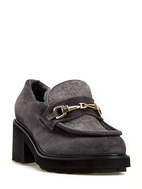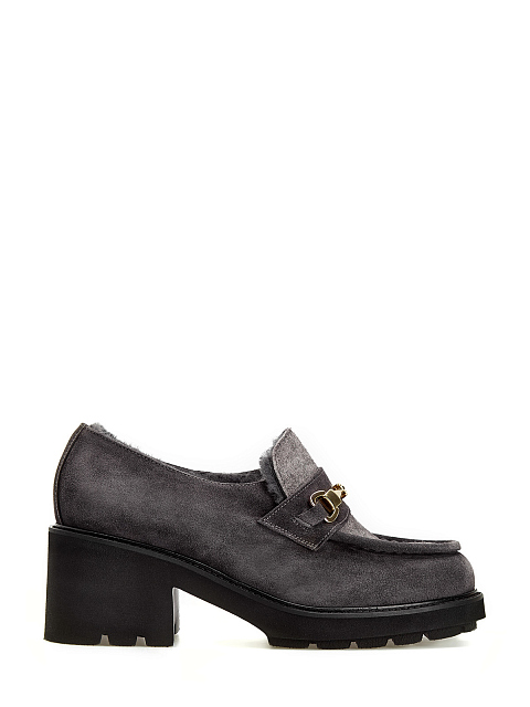 Замшевые лоферы на устойчивом каблуке с меховым утеплителем