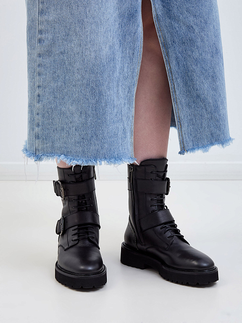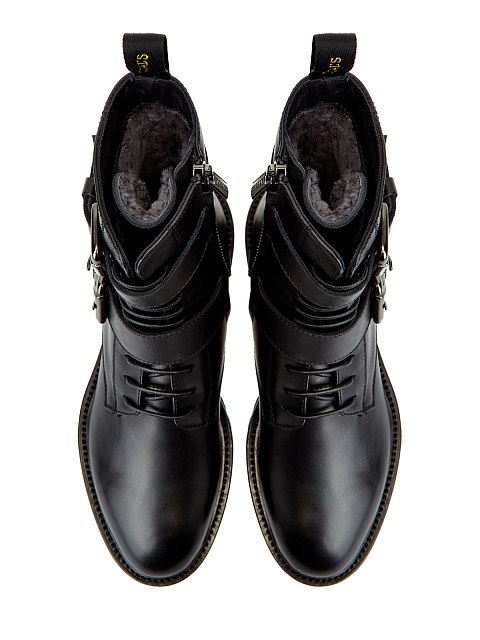 Высокие ботинки из телячьей кожи и меха на шнуровке