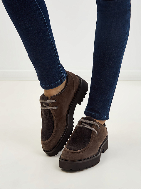 Замшевые дерби на шнуровке с подкладкой из овечьего меха