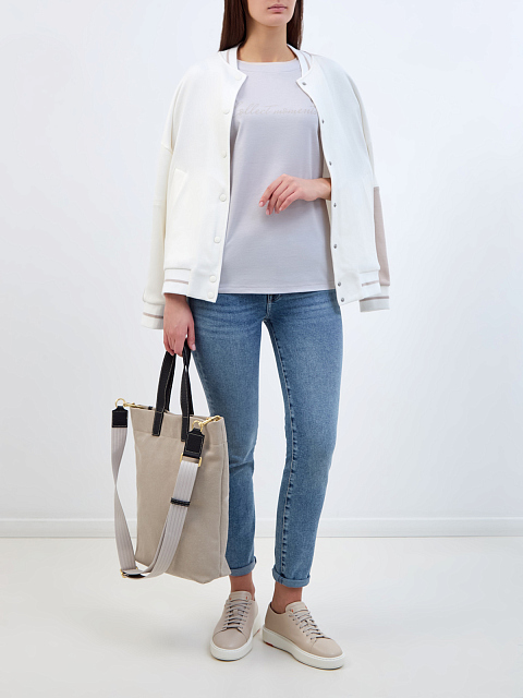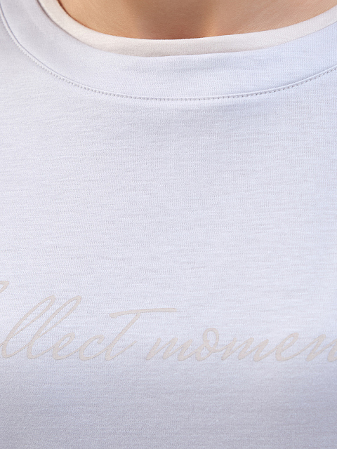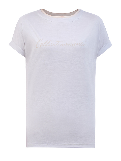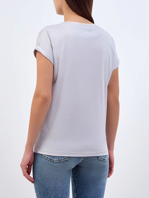 Футболка из тенсела и хлопка с двойной окантовкой ворота и принтом