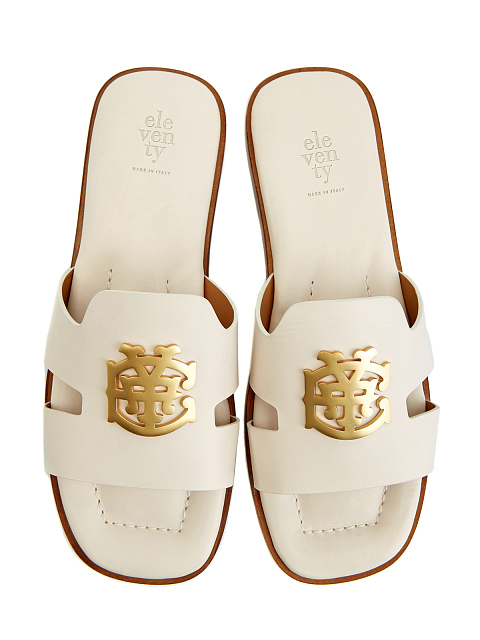 Шлепанцы из гладкой телячьей кожи с литой символикой