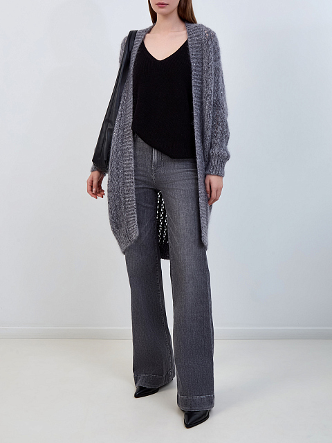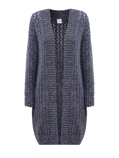 Удлиненный вязаный кардиган из хлопка и мохера с пайетками