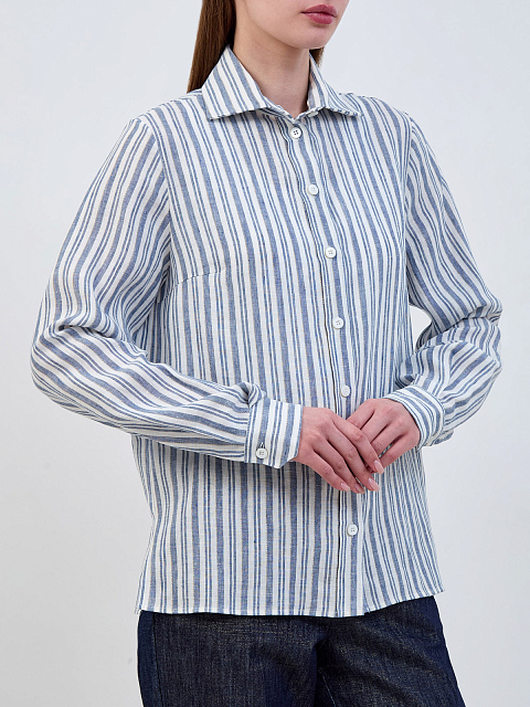 Льняная рубашка в полоску с мерцающей окантовкой ламе