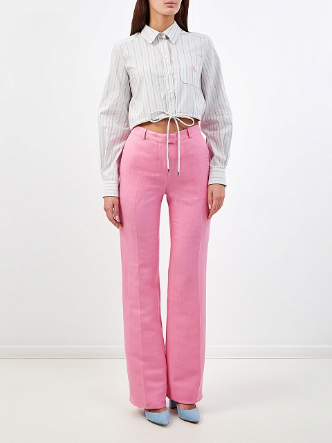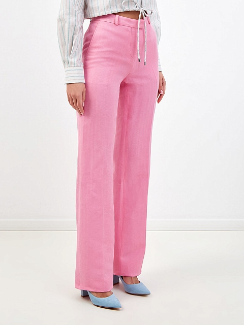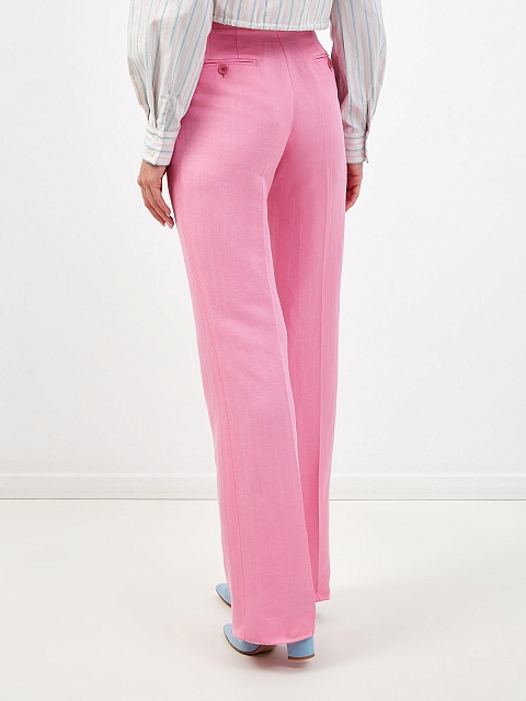 Расклешенные брюки ручной работы из льна и шелка