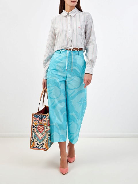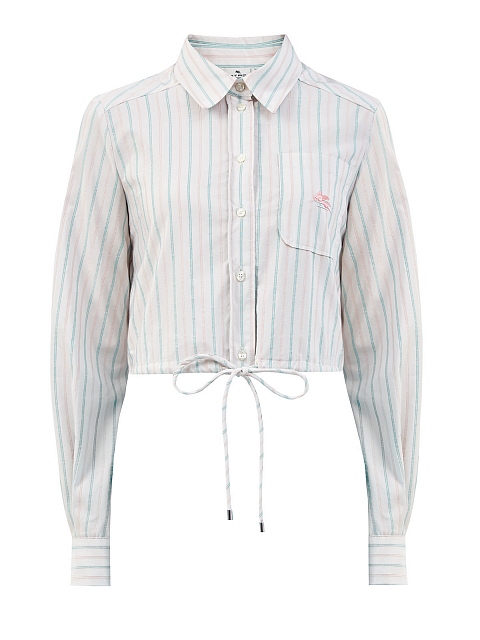 Укороченная рубашка в тонкую полоску с завязками