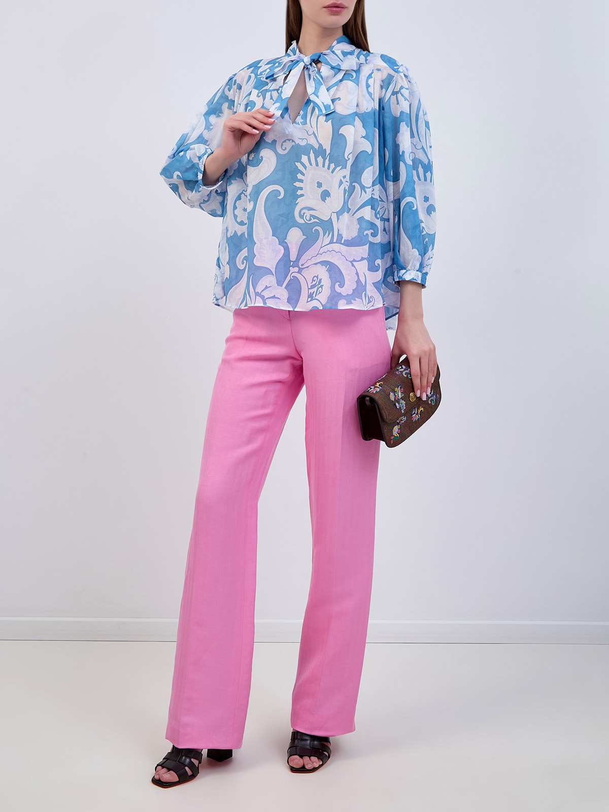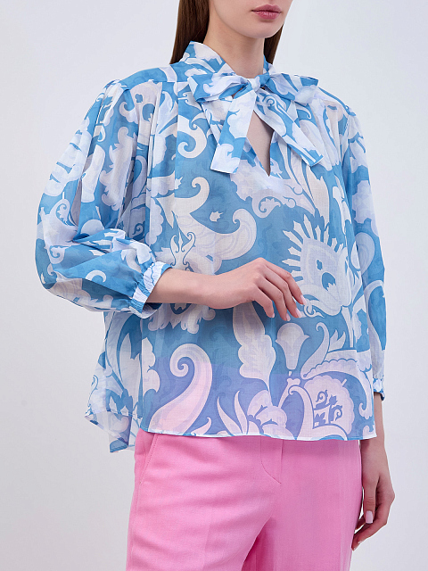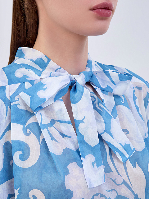 Блуза из легкого хлопка с флористическим узором и лентой-бантом