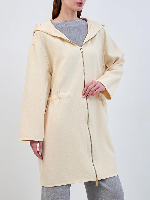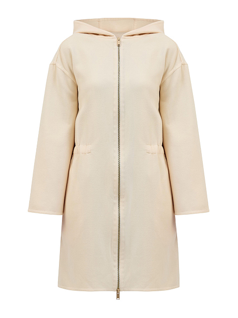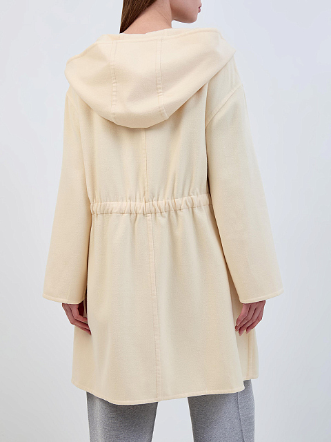 Шерстяное полупальто с регулируемым поясом и капюшоном