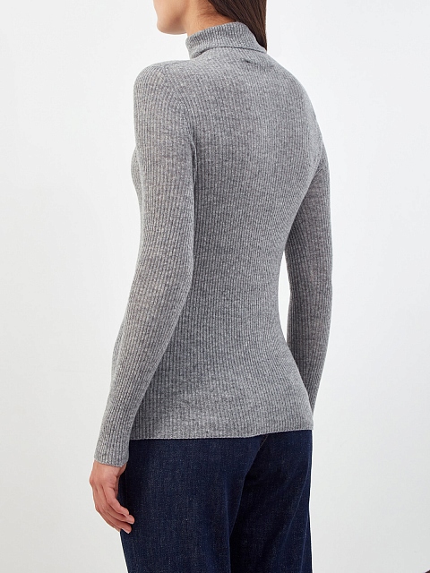 Водолазка из шерсти, шелка и кашемира в английскую резинку