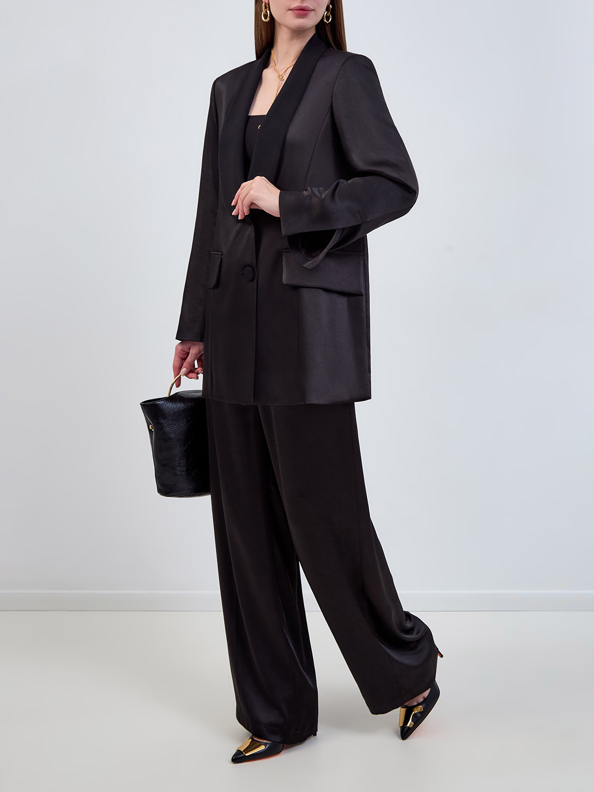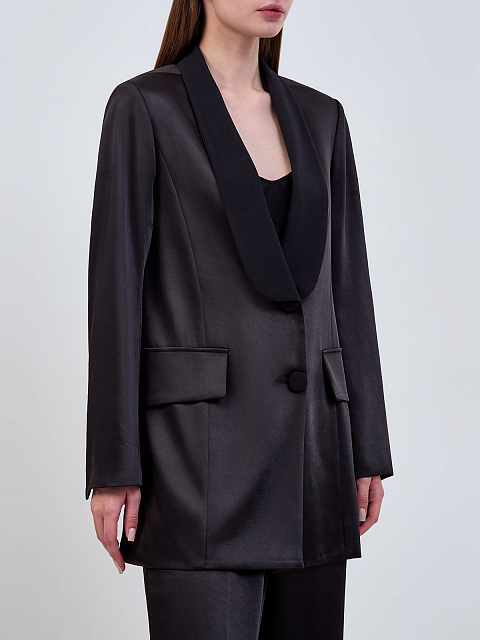 Однобортный жакет-oversize в стиле смокинга из атласа