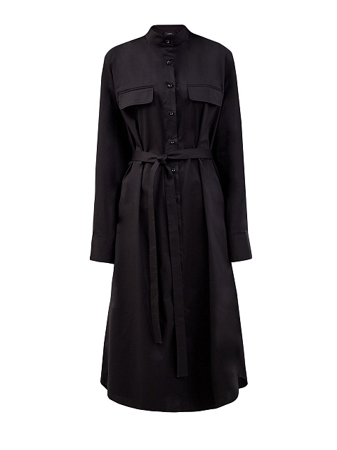 Хлопковое платье-рубашка с накладными карманами и поясом в тон