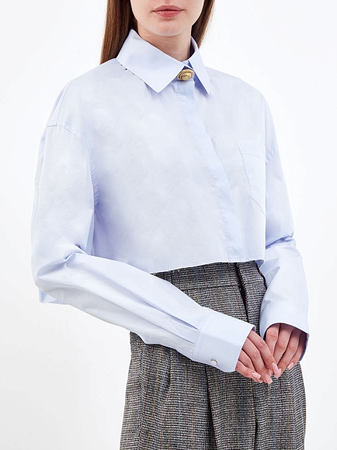 Кроп-рубашка из тонкого поплина с декоративной пуговицей