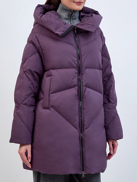 Женский объемный пуховик из водоотталкивающего стеганого нейлона silky dull HETREGO купить за 55 860 руб.