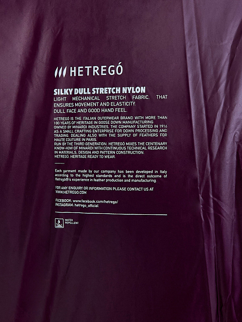 Теплый женский пуховик от Hetrego выполнен из эластичного водонепроницаемого нейлона Silky Dull с ромбовидной стежкой. Наполнитель из пуха и пера подчеркивает объемный крой и делает модель идеальной для составления зимних образов, а высокий ворот дополнительно защищает лицо от ветра. Детали: прорезные карманы, застежка на молнию с двойным брендированным пуллером.