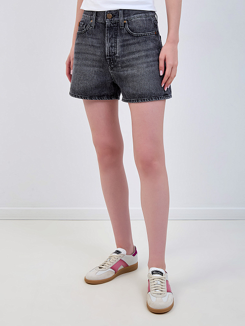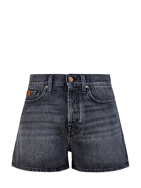 Джинсовые шорты с эффектом потертости и нашивкой из кожи