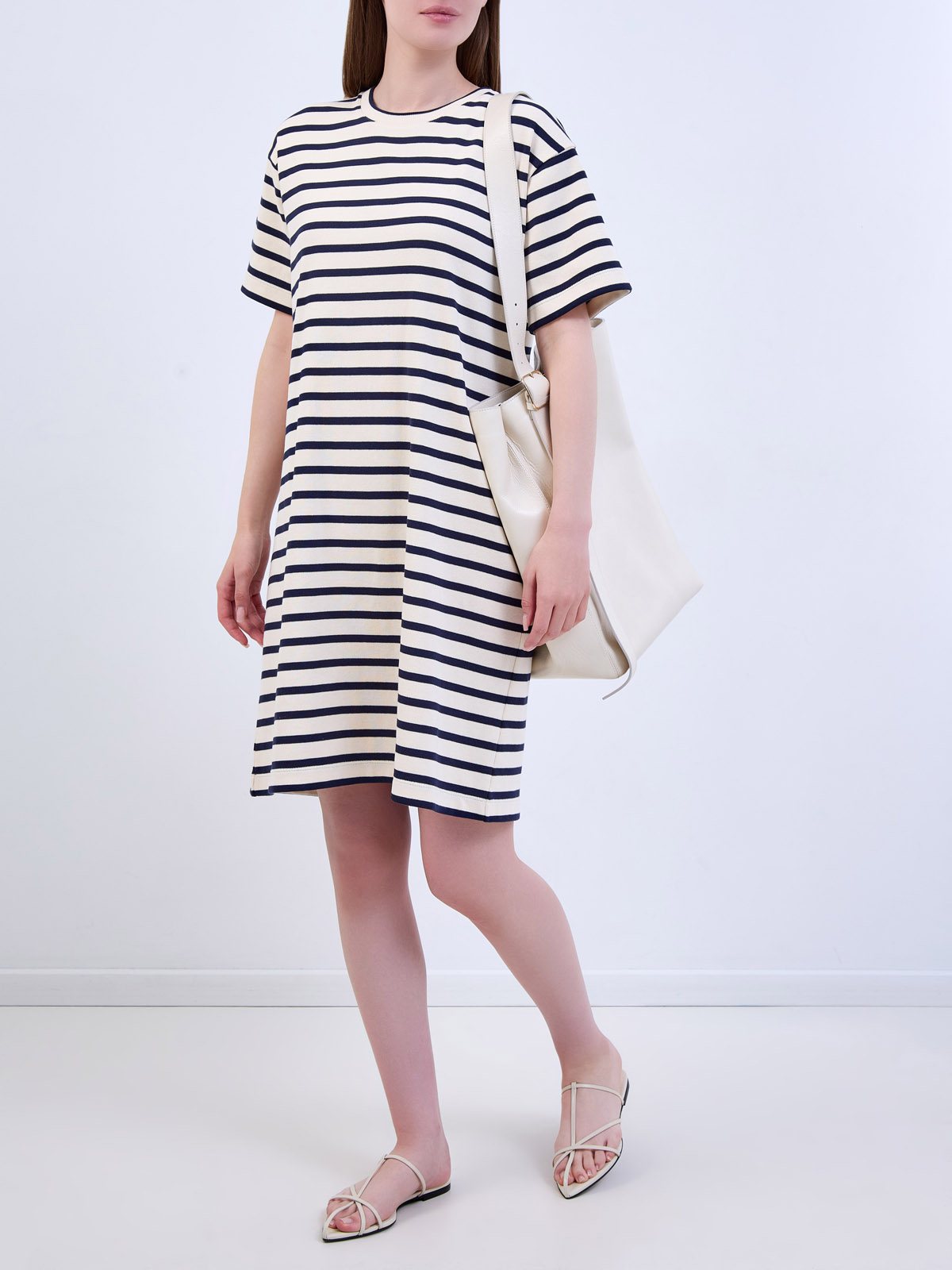 Платье-футболка JS+ из хлопка в полоску с нашивкой