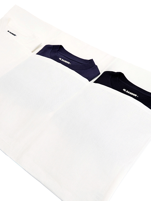 Комплект из трех базовых лонгсливов в белом, черном и синем цветах от Jil Sander. Каждое изделие выполнено из плотного хлопка джерси, слегка приталенный крой и полностью натуральный состав делают модель универсальным элементом для создания повседневных образов. Минималистичный дизайн дополнен нашивкой с контрастным логотипом. В комплекте предоставляется фирменный чехол с тремя отделениями и завязками.