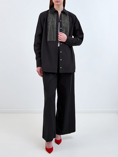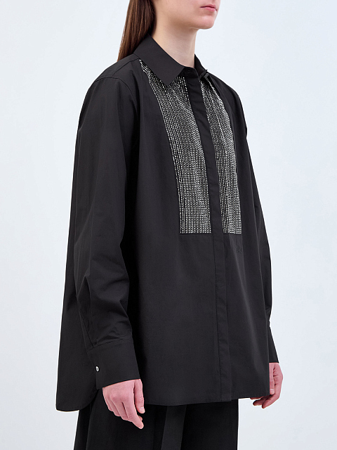 Удлиненная рубашка из поплина с мерцающими стразами и вышивкой