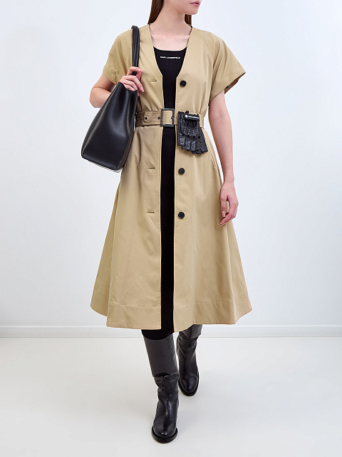 Тренчкот-трансформер со съемными рукавами, баской и поясом