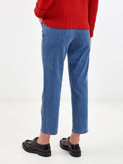 Джинсы на высокой посадке с прострочкой в стиле ретро