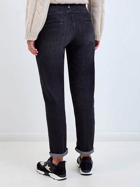 Женские джинсы от Lorena Antoniazzi созданы из окрашенного вручную хлопкового денима. Комфортный, слегка зауженный крой идеально подходит для создания повседневных образов в стиле leisure, эластичные волокна в составе облегчают уход за изделием. Детали: застежка на пуговицу, крючки и молнию, символика бренда из перламутра на спинке, шлевки для ремня. Сделано в Италии.