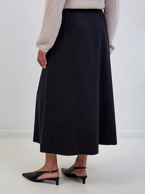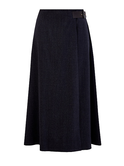 Юбка-миди из шерсти с кожаной застежкой и символикой