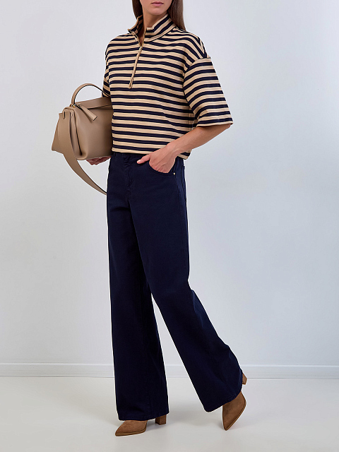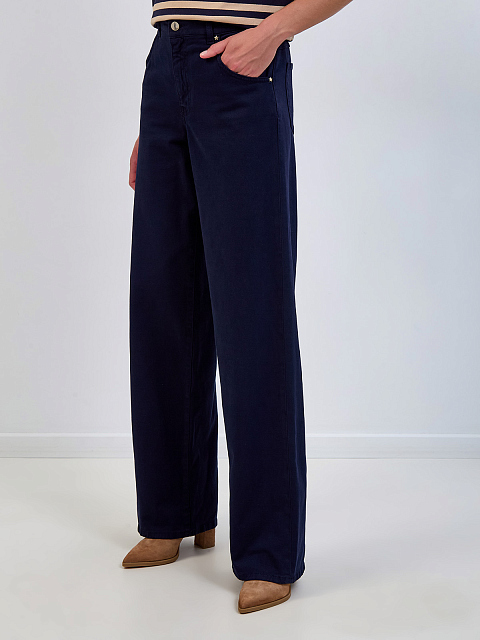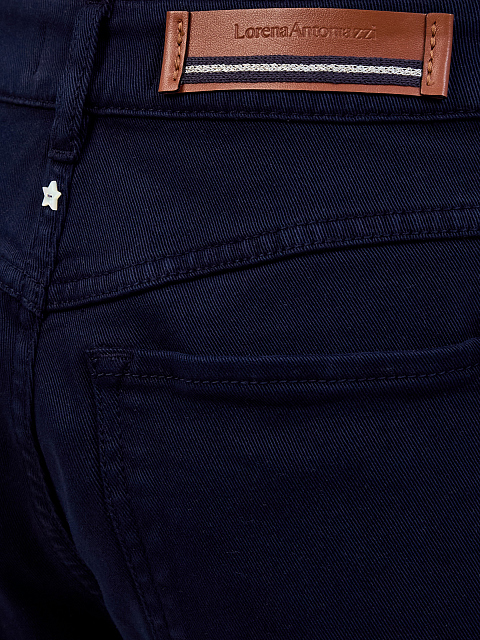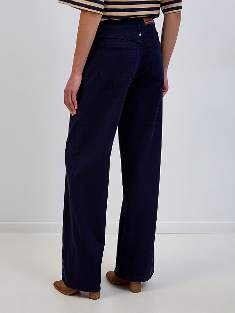 Джинсы из окрашенного вручную габардина с кожаным патчем