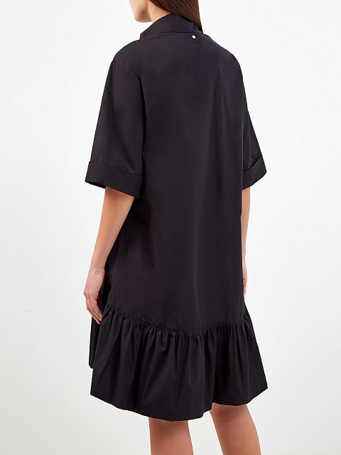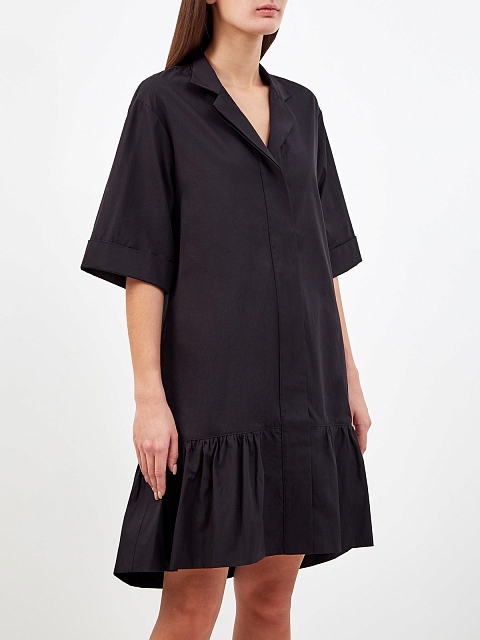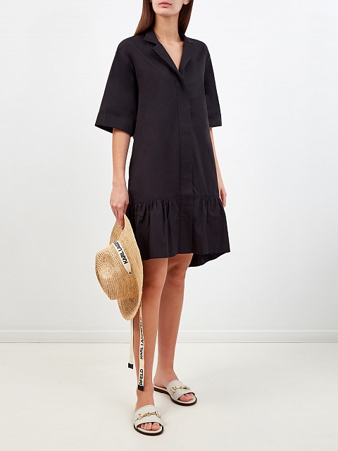 Хлопковое платье-рубашка с объемным асимметричным подолом