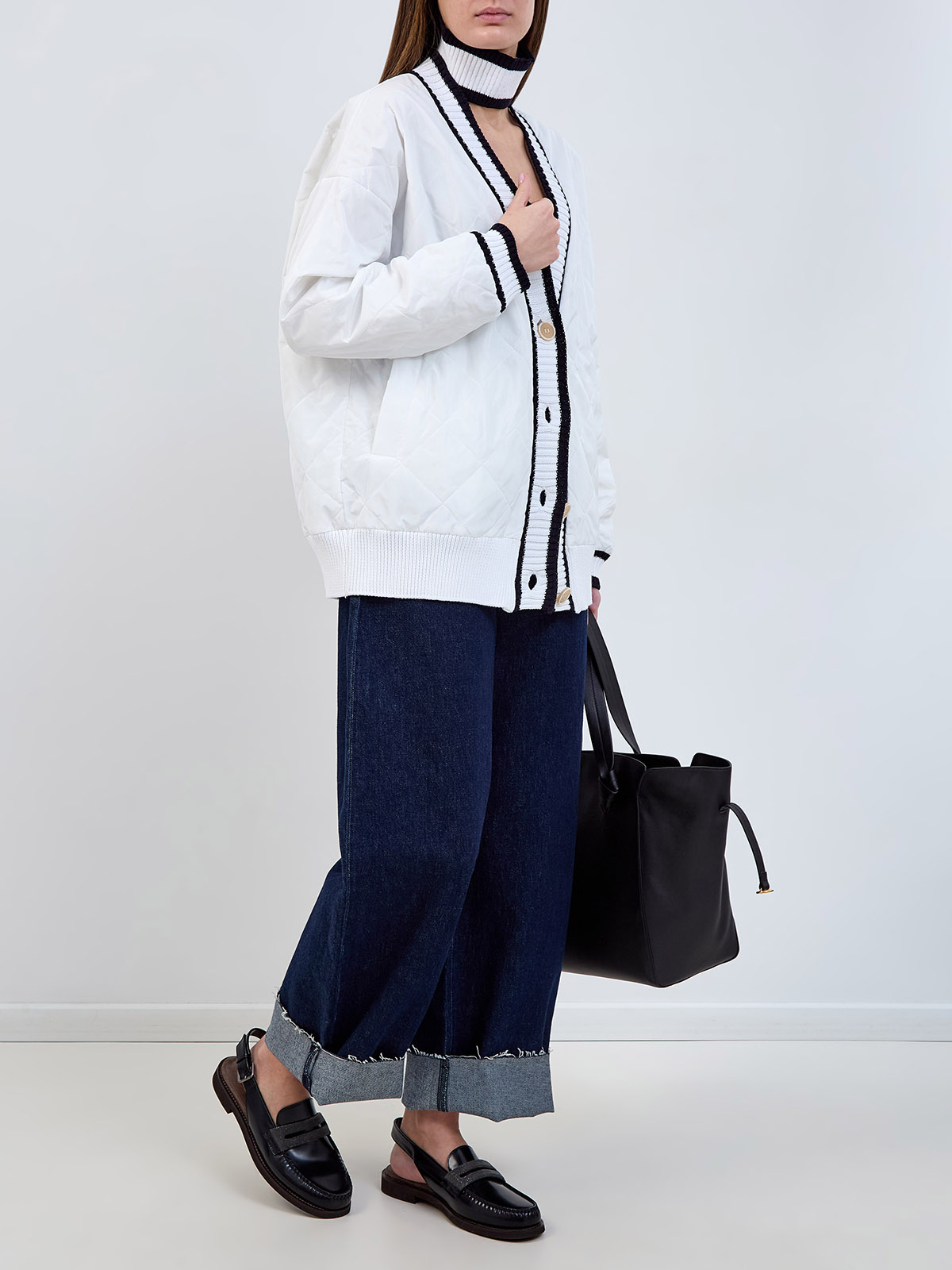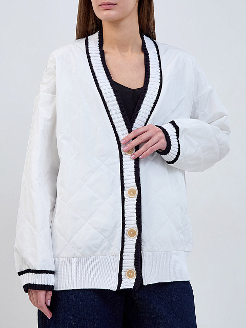 Стеганая куртка с V-образным вырезом и вязаной отделкой