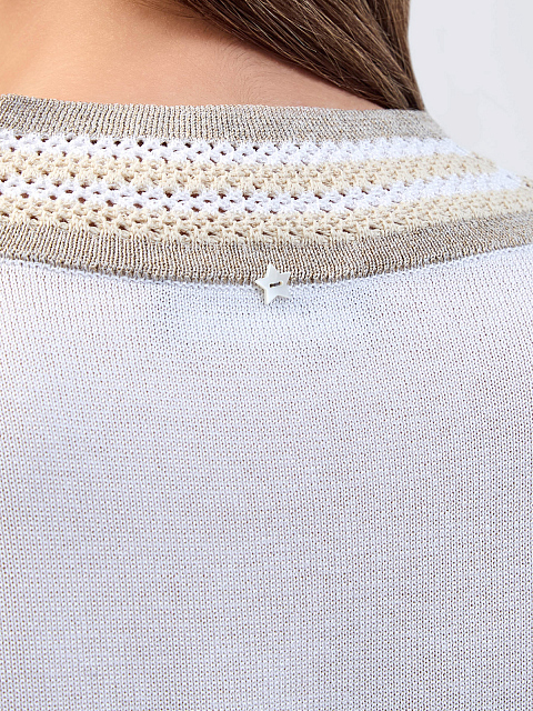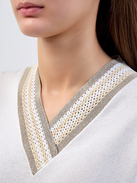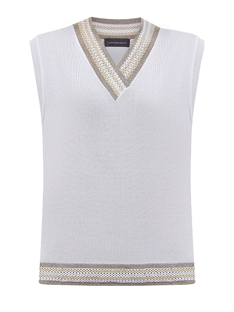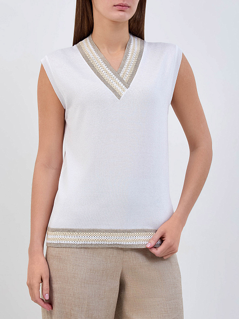 Жилет из смесовой вискозы с вязаной отделкой в полоску