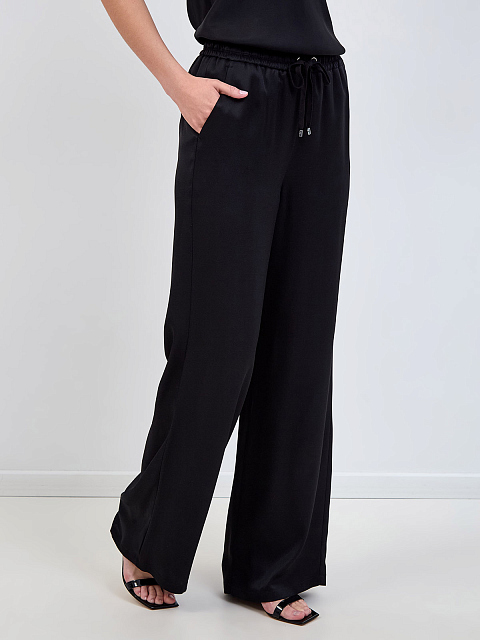Широкие брюки из струящегося атласа с поясом-кулиской