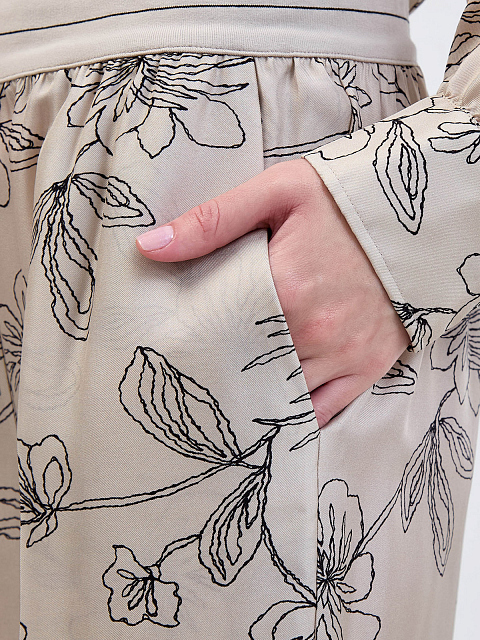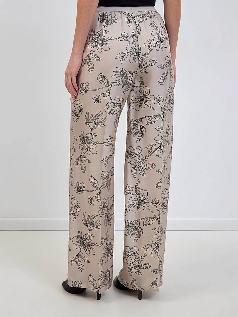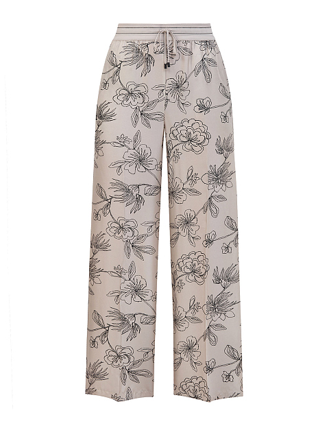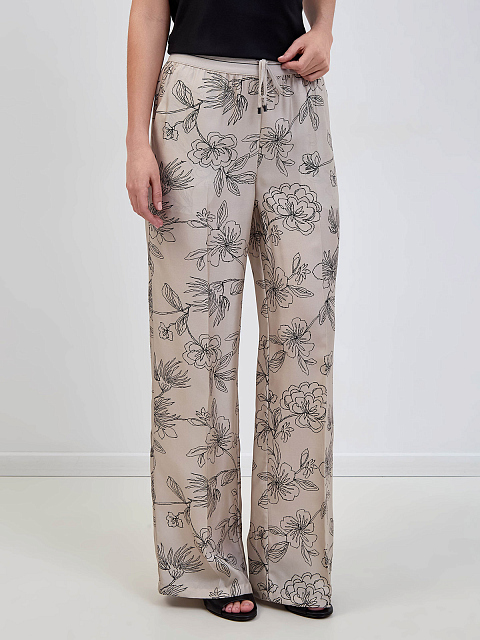 Брюки из шелка с флористическим принтом и поясом-кулиской