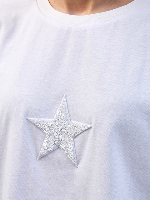 Женская хлопковая футболка с объемной символикой из пайеток LORENA_ANTONIAZZI купить за 37 900 руб.