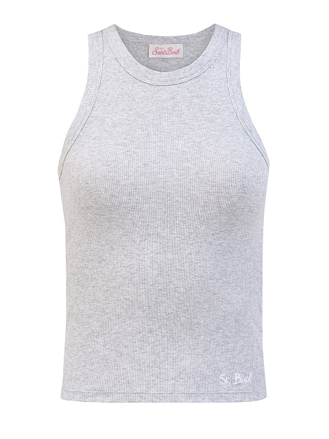 Топ из хлопкового джерси в рубчик с вышитым логотипом