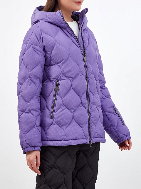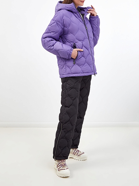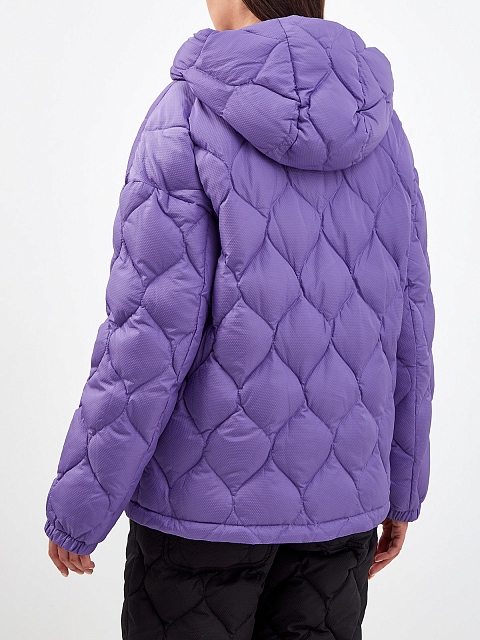 Стеганый пуховик с капюшоном и брендированными пуллерами