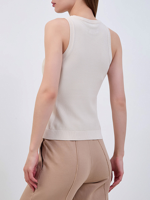 Хлопковый топ-халтер с отделкой английской вязки и нашивкой