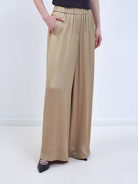 Широкие брюки из атласа с микро-узором в тон