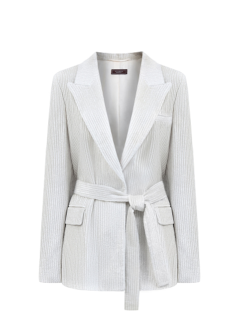 Однобортный жакет из мерцающего вельвета с поясом в тон