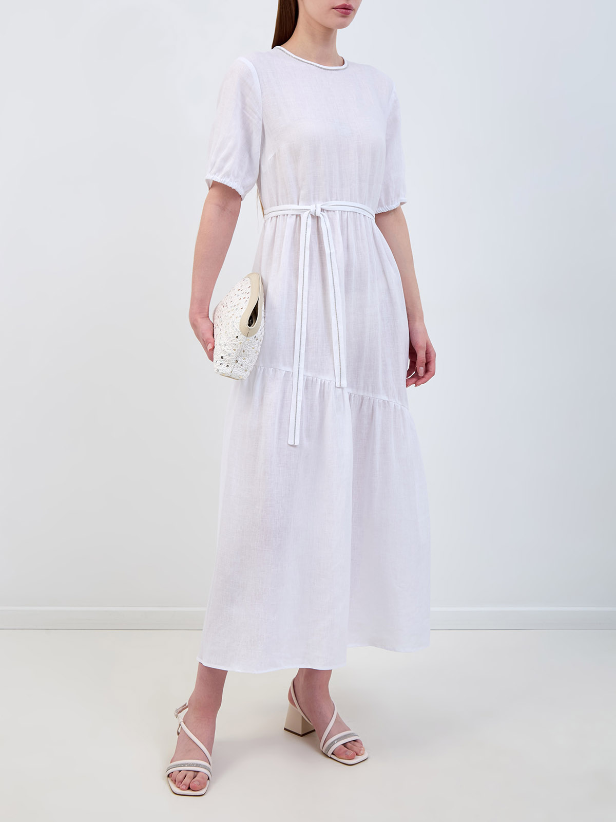 Платье-миди из тонкого льна с мерцающими цепочками Punto Luce