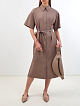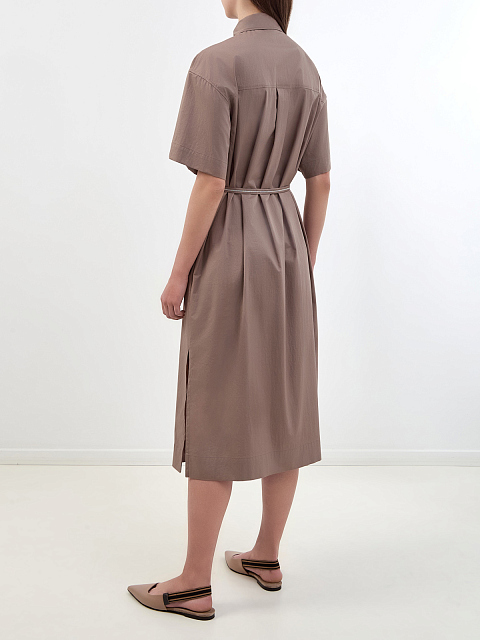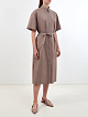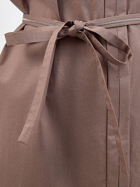 Платье-рубашка из гладкого поплина с мерцающим поясом в тон