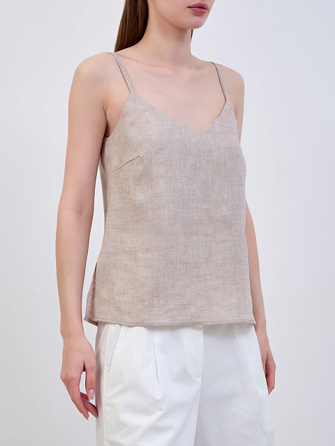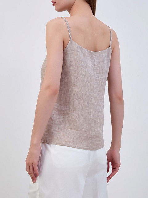 Льняной топ с тонкими бретелями и цепочками Punto Luce
